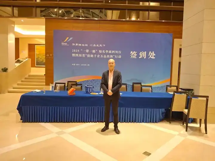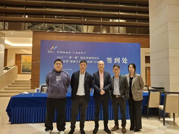 荷兰中国总商会会长邱晓形执行会长孙强,财务长池仁好,副会长钟雪峰,副会长陈一然一同参加四川省2025“一带一路”知名华商四川行暨四川省“侨助千企万品出海”行动。